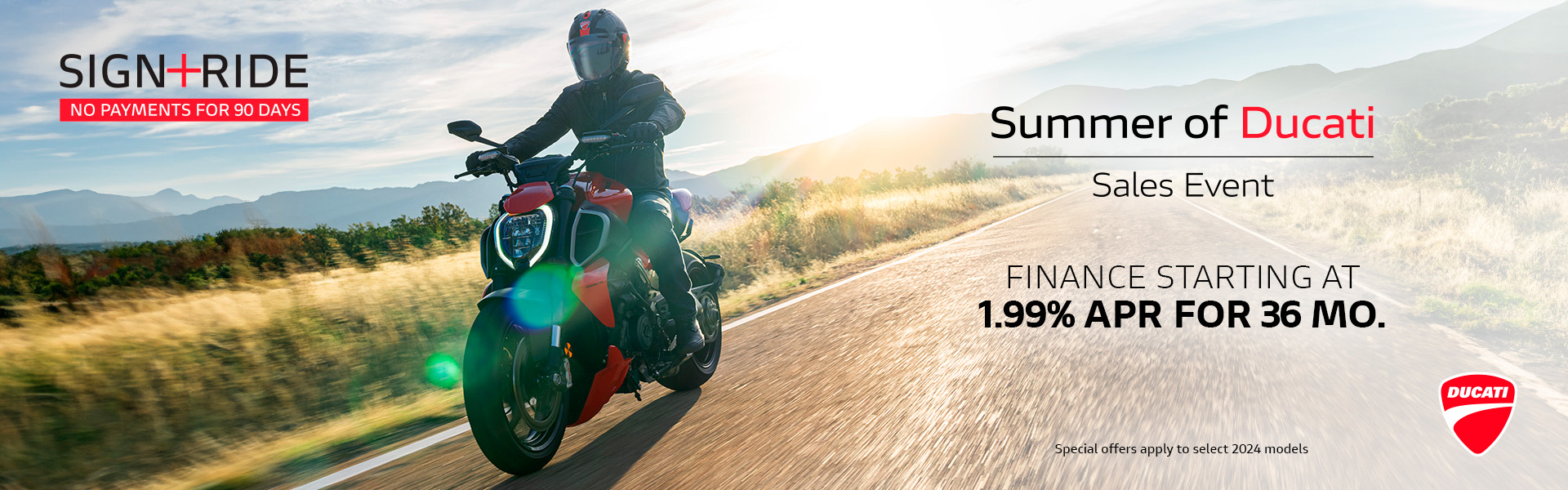 Enjoy no payments until 2026 on select models with Ducati Traditional Financing. Discover our current offers below.